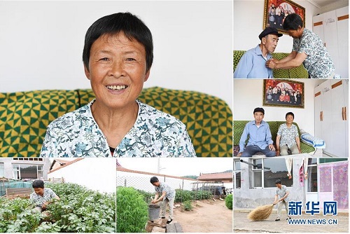 王月蘭,女,1949年出生,山西省長(zhǎng)治市沁源縣南峪村人。因老伴劉光明身患重病,王月蘭一家于2018年被納入建檔立卡貧困戶。在健康扶貧政策的幫助下,老伴看病的巨額醫(yī)藥費(fèi)用報(bào)銷(xiāo)比例超過(guò)80%。王月蘭說(shuō),希望老伴身體越來(lái)越好,一家的生活也越來(lái)越好。 左上:王月蘭肖像;右上:王月蘭在家中照顧老伴劉光明;右中:王月蘭(右)和老伴劉光明在家中合影;下右:王月蘭在家中打掃院子;下中:王月蘭在家里用自來(lái)水洗手;下左:王月蘭在家中管護(hù)蔬菜(拼版照片,6月20日攝)。 地處晉東南的山西省長(zhǎng)治市,位于由太行山、太岳山環(huán)繞而成的上黨盆地中。在群山中、崖壁上,許多村莊自然條件惡劣,基礎(chǔ)設(shè)施落后,脫貧致富是大山深處人們的迫切心愿。 近年來(lái),一場(chǎng)場(chǎng)脫貧攻堅(jiān)戰(zhàn),在一個(gè)個(gè)深山村打響。政府全力探索脫貧路徑的同時(shí),山區(qū)百姓因地制宜,靠自己的雙手和智慧走上致富路,交出了一份扎實(shí)的脫貧答卷。 記者在太行山、太岳山一路尋訪,記錄下多位70歲老人的生活。這些共和國(guó)的同齡人,親歷了山鄉(xiāng)的巨變,見(jiàn)證著長(zhǎng)治山區(qū)脫貧攻堅(jiān)偉大工程的一步步推進(jìn)。 新華社記者 楊晨光 攝