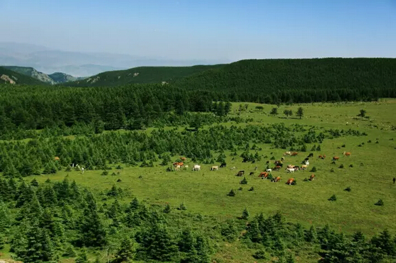 蘆芽山十里松林在陽(yáng)光下鋪展