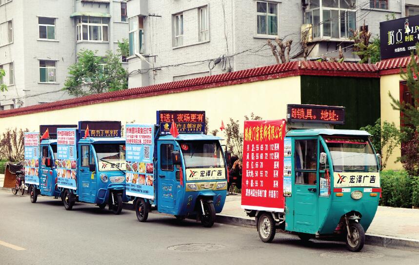 目前,我市正在創(chuàng)建全國文明城市,希望有關(guān)部門能夠同步跟進(jìn),下大力、出重拳,治理突出問題,切實改善城市面貌,不斷提高老百姓的幸福感和滿意度,為我市創(chuàng)建全國文明城市添磚加瓦。圖為停在非機動車道上的電動三輪廣告車。張志遠(yuǎn) 攝
