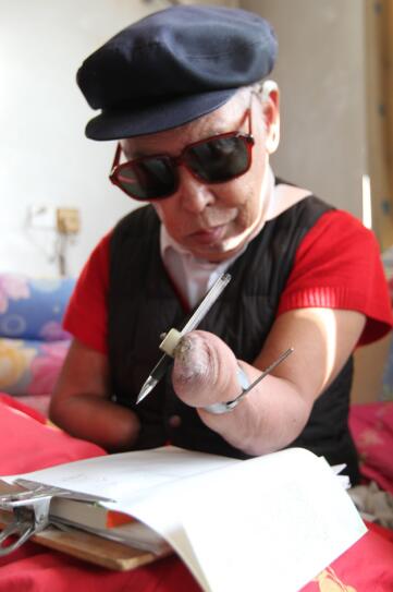 1982年,父親大病一場,漸漸體力不支,主動(dòng)辭去了村支書的職務(wù)。家人如釋重負(fù),覺得他終于可以放松下來過過悠閑的日子了??墒遣痪?,父親又有了新的方向——寫書!他沒手沒腳,怎么想到寫書了呢?父親在《極限人生》里提到了兩個(gè)因緣:第一個(gè),死去戰(zhàn)友的臨終囑托。父親的指導(dǎo)員犧牲前說過:“一個(gè)連的消亡,在戰(zhàn)爭史上算不了什么,但你要想辦法把這壯舉記錄成文,傳給后代,這很有意義?!钡诙€(gè),共產(chǎn)黨人的使命召喚著他去寫:一次父親應(yīng)邀去一所中學(xué)作報(bào)告,上學(xué)的重外甥跑來問他:“舅姥爺,同學(xué)們議論說,當(dāng)年你們打仗那么拼命,是不是太傻了?您到處給人作報(bào)告,是不是拿了人家錢了?”這些話深深地刺痛了父親,作為歷史的見證人,作為共產(chǎn)黨人,他覺得自己必須告訴孩子們,世界上還有比錢更重要的東西,還有很多安身立命的道理,他下定決心,一定要把那段歷史寫下來。