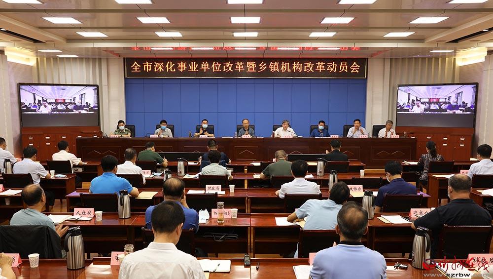 全市深化事業(yè)單位改革暨鄉(xiāng)鎮(zhèn)機構(gòu)改革動員會會場。范濤 攝