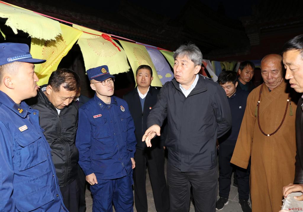 秋冬季節(jié)天干物燥,森林防火消防安全進入關(guān)鍵階段。朱曉東沿途察看作物秸稈收儲情況,專門到國保單位佛光寺、尊勝寺檢查消防安全工作,赴五臺縣應(yīng)急救援訓練基地檢查森林消防應(yīng)急演練情況。他強調(diào),各級各部門要切實明確消防安全管理人和責任人,各單位特別是防火重點單位不僅要配齊配全各類消防器材,而且要確保管用能用。對巡查發(fā)現(xiàn)的消防隱患要及時消除,切實防患于未然。要加大宣傳力度,讓森林防火期嚴禁野外用火規(guī)定深入人心,切實轉(zhuǎn)變?yōu)槿罕姷淖杂X意識。要加強應(yīng)急隊伍實地演練,全面提升發(fā)現(xiàn)、處置和快速反應(yīng)出動的綜合應(yīng)急能力。