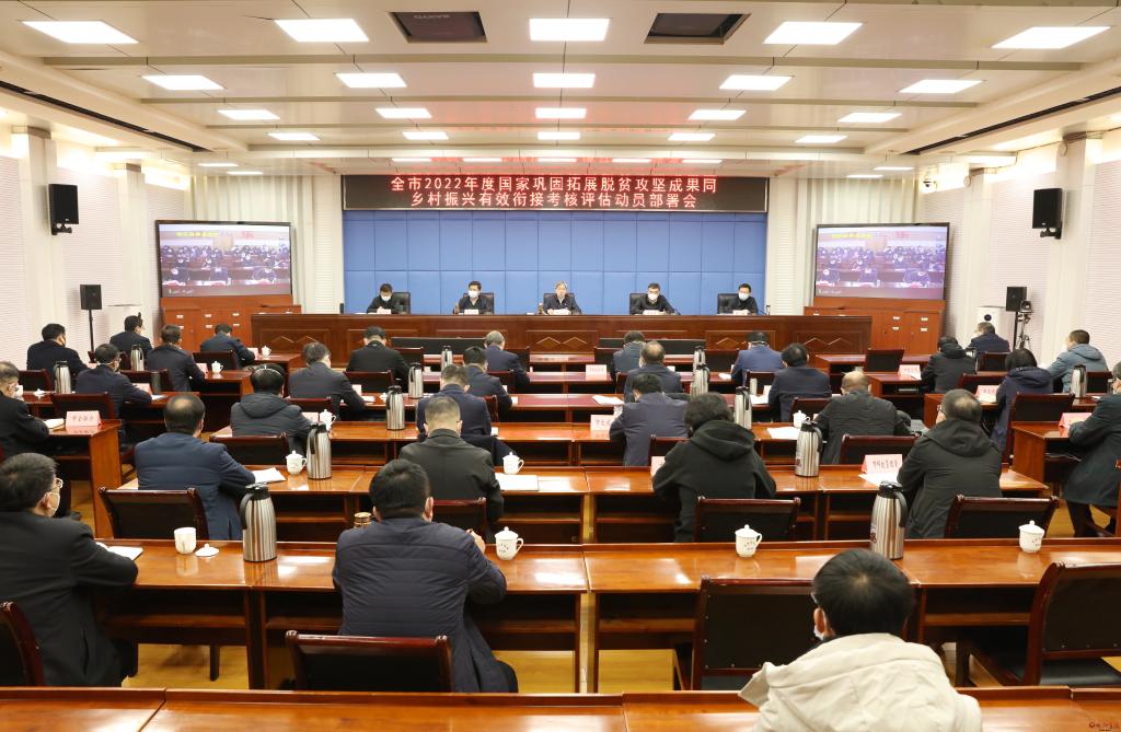 12月6日,全市2022年度國家鞏固拓展脫貧攻堅成果同鄉(xiāng)村振興有效銜接考核評估動員部署會以視頻形式召開,貫徹落實省相關(guān)會議精神,對標(biāo)要求進(jìn)一步安排部署各項工作。市委書記朱曉東主持會議并作重要講話。市委副書記、市長李建國出席。市領(lǐng)導(dǎo)張文偉、張敏、崔崢嶺,市政府秘書長張艮生,市鞏固銜接領(lǐng)導(dǎo)小組成員單位負(fù)責(zé)人在市主會場參加會議,各縣(市、區(qū))設(shè)分會場。