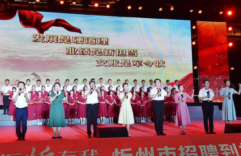 青春向黨,振“忻”有我。7月7日晚,忻州市招聘到村工作大學(xué)生風(fēng)采展示活動(dòng)在忻州古城北城門樓廣場(chǎng)精彩上演。市委書(shū)記朱曉東,市政協(xié)主席范建民,市委常委、秘書(shū)長(zhǎng)溫建軍,市委常委、組織部長(zhǎng)張敏等市領(lǐng)導(dǎo)與社會(huì)各界和全市到村工作大學(xué)生代表一同觀看。