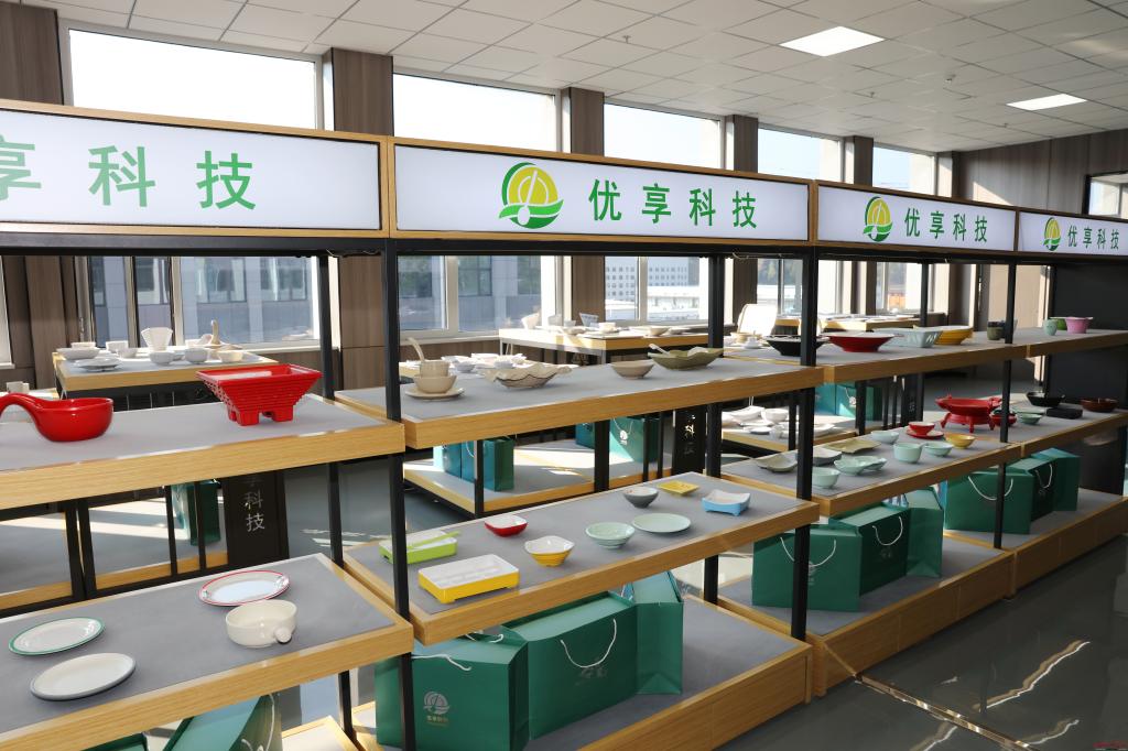 優(yōu)享科技秸稈循環(huán)利用綠色器皿項(xiàng)目。范濤攝