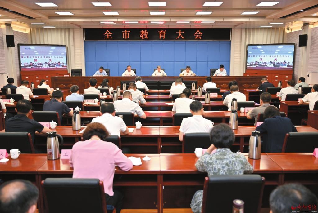 會議充分肯定近年來全市教育事業(yè)發(fā)展取得的成績,對教育強市建設(shè)各項重點工作作出全面部署。會議指出,要堅持不懈用習(xí)近平新時代中國特色社會主義思想鑄魂育人,一體化推進(jìn)大中小學(xué)思想政治教育,培養(yǎng)德智體美勞全面發(fā)展的社會主義建設(shè)者和接班人。要堅持以人民為中心發(fā)展教育,推動義務(wù)教育優(yōu)質(zhì)均衡發(fā)展,促進(jìn)學(xué)前教育普及普惠和高中階段學(xué)校多樣化發(fā)展,前瞻性優(yōu)化區(qū)域教育資源配置,持續(xù)鞏固“雙減”成果,不斷提升基礎(chǔ)教育服務(wù)質(zhì)量。要統(tǒng)籌實施科教興市、人才強市、創(chuàng)新驅(qū)動發(fā)展戰(zhàn)略,加快構(gòu)建現(xiàn)代職業(yè)教育體系,增強高等教育綜合實力,培育壯大科技創(chuàng)新力量,不斷塑造高質(zhì)量發(fā)展新動能新優(yōu)勢。要強化師德師風(fēng)建設(shè),優(yōu)化完善教師管理體制,厚植尊師重教社會風(fēng)尚,大力培養(yǎng)鍛造一支師德高尚、業(yè)務(wù)精湛、結(jié)構(gòu)合理、充滿活力的高素質(zhì)專業(yè)化教師隊伍。要進(jìn)一步深化教育領(lǐng)域綜合改革,進(jìn)一步擴大教育開放合作交流,進(jìn)一步建設(shè)全民終身學(xué)習(xí)的學(xué)習(xí)型社會,充分激發(fā)教育高質(zhì)量發(fā)展的生機活力。