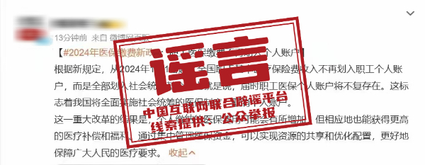 謠言:2024年職工醫(yī)保繳費(fèi)將不再劃入個(gè)人賬戶?