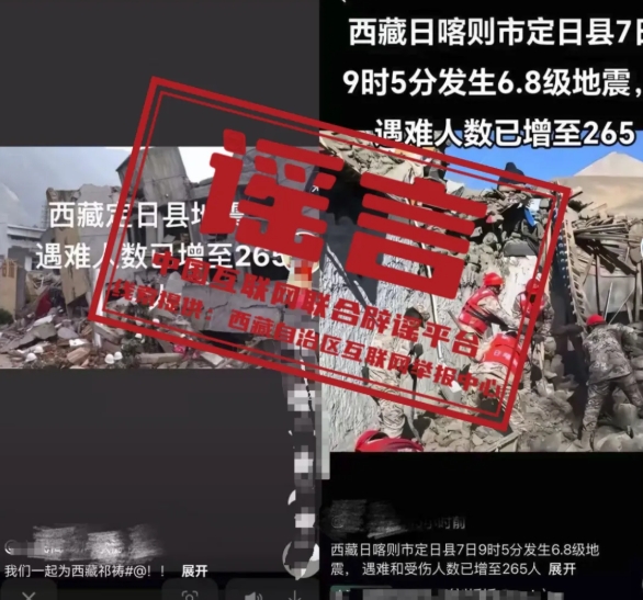真相:2025年1月7日9時5分,西藏日喀則市定日縣發(fā)生6.8級地震,震源深度10公里。截至1月9日上午6時,官方正式公布此次地震已造成房屋倒塌3612戶,遇難126人。該數(shù)據(jù)是目前唯一可信的遇難人數(shù)信息。然而,近日網(wǎng)絡(luò)上卻出現(xiàn)一些別有用心之人,故意編造并傳播虛假信息,聲稱地震遇難人數(shù)為265人,這與實際情況嚴(yán)重不符,屬于毫無根據(jù)的謠言。
