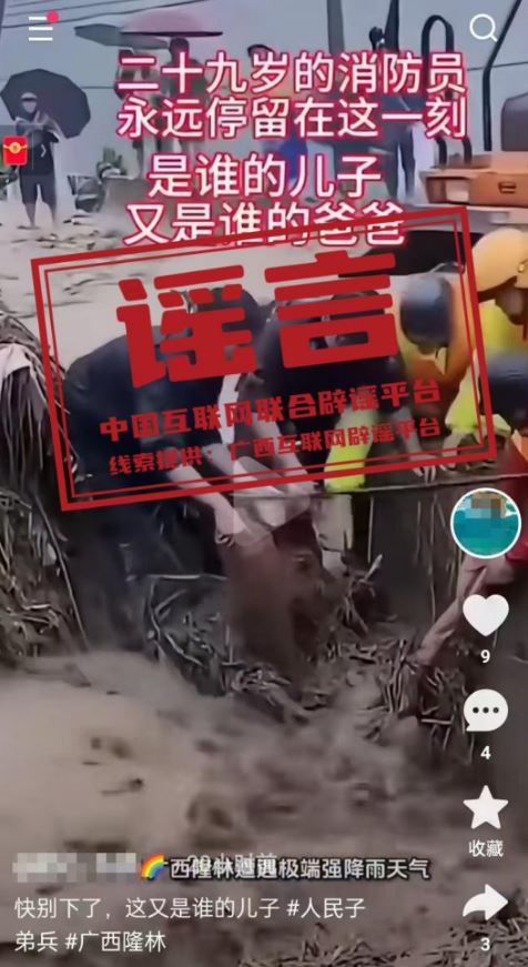 辟謠:網(wǎng)傳“一名消防員在廣西隆林抗洪救援任務(wù)中犧牲”為不實(shí)信息
