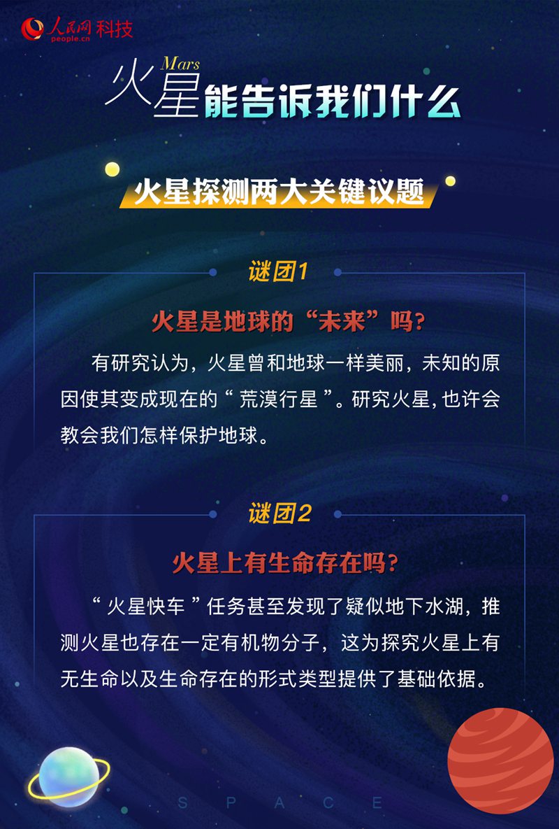 是什么原因?qū)е禄鹦鞘チ怂??它怎樣從一個藍色星球變成現(xiàn)在一片荒漠的紅色星球?其大氣、環(huán)境是如何演化的?火星的今天有沒有可能就是地球的明天?這些都是科學家們想要通過相關(guān)探測去解答的問題。