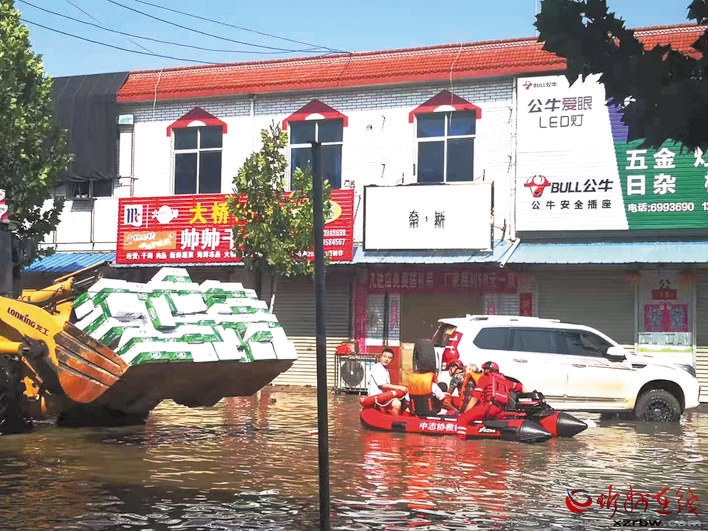 為完成好這次救援任務(wù),該服務(wù)隊準備了救生衣、救生圈、發(fā)電機、迷霧機、救援繩、急救箱、防疫物品等充足的保障物資。24日一早,服務(wù)隊抵達鄭州,之后他們在主管部門統(tǒng)一指揮下展開積極救援。 (王國棟 張蓉 攝影報道)