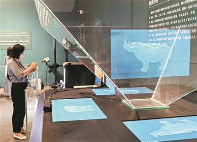 在“數(shù)說犀尊”展覽上,展廳綜合運用了高清三維掃描、超高清顯示、人工智能、紅外感應、增強現(xiàn)實等科技手段展示文物研究成果??萍既請笥浾?洪星攝