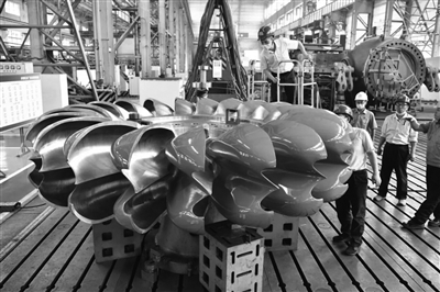 圖為東方電機國內首臺自主研制的單機容量最大功率150兆瓦級沖擊式水電機組轉輪。 資料照片