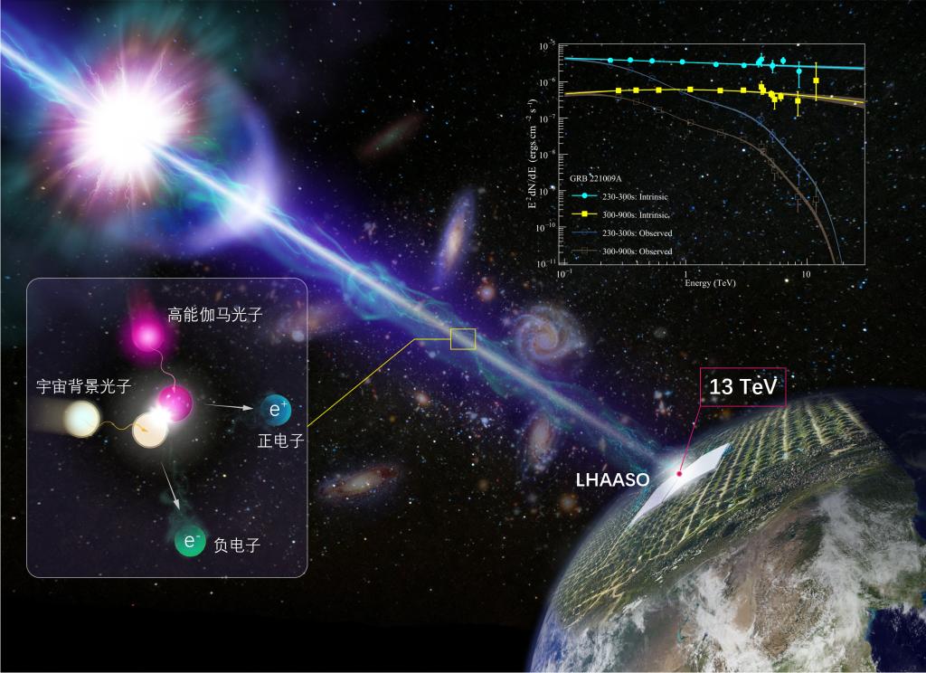 科學(xué)家利用我國高海拔宇宙線觀測站“拉索”(LHAASO),精確測量了迄今最亮伽馬暴GRB 221009A的高能輻射能譜,并據(jù)此獲得了對伽馬暴的全新認(rèn)知。