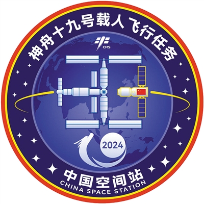 該方案標識是由中國空間站、神舟載人飛船、地球、星空等圖案構成的一個紅、黃、藍配色的圓形標識。數(shù)字“19”融入中國龍的元素,舞動上升。周圍的點點星辰共十九顆,對應神舟十九號載人飛行任務,共同體現(xiàn)我國航天事業(yè)的繁榮昌盛。