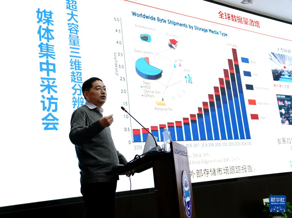 2月21日,上海光機所阮昊研究員介紹“超級光盤”的科學(xué)原理。新華社記者張建松 攝