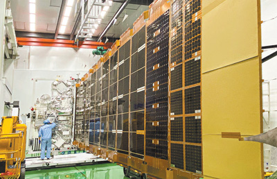 圖為銀河航天靈犀03星柔性太陽翼展開狀態(tài)。 銀河航天供圖