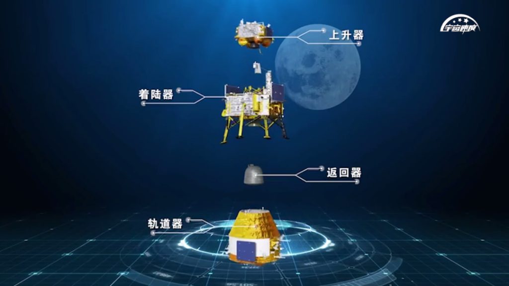 嫦娥六號由軌道器、著陸器、上升器、返回器四個部分組成。(中國航天科技集團(tuán)五院供圖)