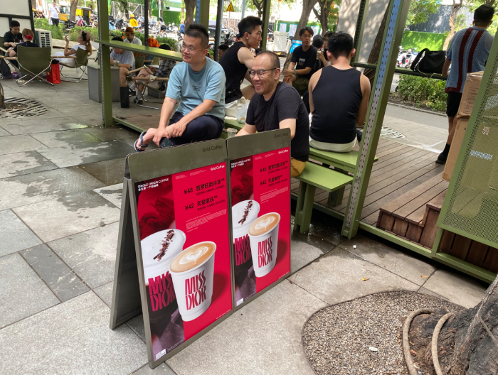 Grid Coffee與迪奧聯名咖啡吸引消費者排隊購買。