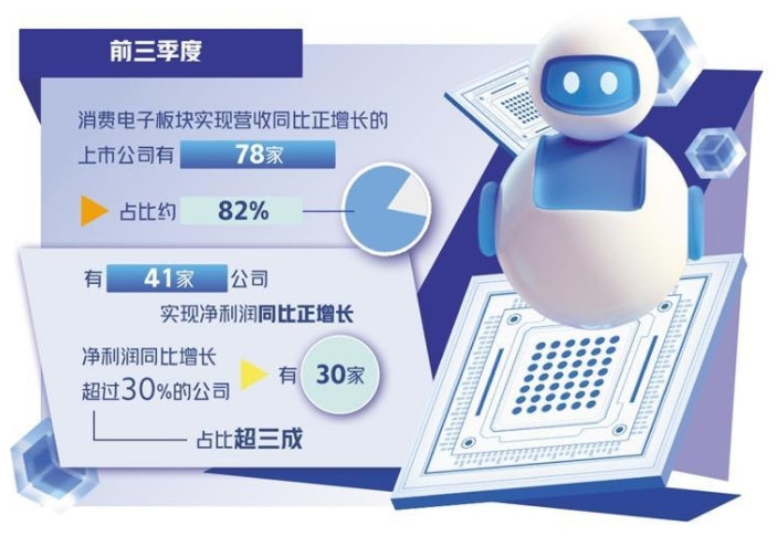 受益于AI等新技術(shù)的驅(qū)動,以及“以舊換新”等促消費政策的落地見效,今年以來,消費電子市場持續(xù)復(fù)蘇,帶動相關(guān)板塊上市公司業(yè)績回暖,交出企穩(wěn)向好的三季度答卷,一批上市公司前三季度實現(xiàn)營收、凈利雙提升。