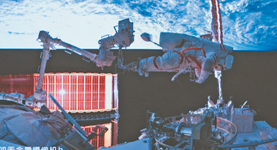 航天員蔡旭哲在空間站組合體艙外工作的畫(huà)面。