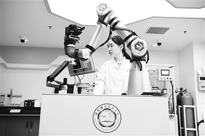 中國科學(xué)技術(shù)大學(xué)一名博士研究生在實(shí)驗(yàn)室調(diào)試機(jī)器化學(xué)家系統(tǒng)“小來”。新華社記者 張端攝