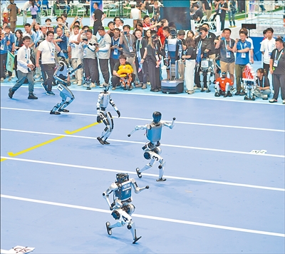 圖為機(jī)器人在開幕式上開展100米賽跑。新華社記者 謝 晗攝