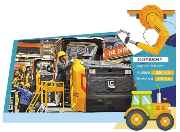 《方案》提出,2025年至2026年,機械行業(yè)運行保持平穩(wěn)向好態(tài)勢,重點產(chǎn)業(yè)鏈供應鏈韌性和安全水平持續(xù)提升,發(fā)展質(zhì)量效益邁上新臺階,力爭營業(yè)收入年均增速達到3.5%左右,營業(yè)收入突破10萬億元。中國機械工業(yè)聯(lián)合會相關負責人表示,《方案》的目標設定,體現(xiàn)了規(guī)模與質(zhì)量并重的系統(tǒng)性思維,強調(diào)供給和需求兩側協(xié)同發(fā)力。