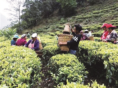 瓦姑村的茶農(nóng)正在采摘茶葉。