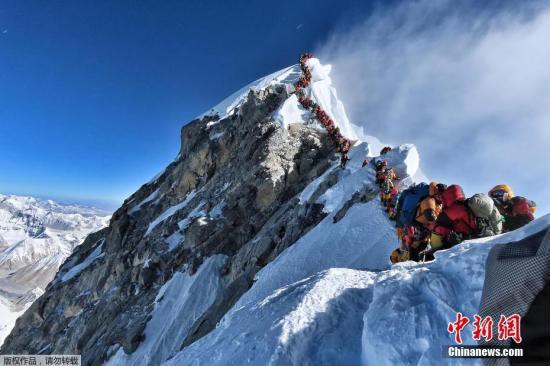 資料圖為數百名登山者在珠峰登頂之路上排隊。