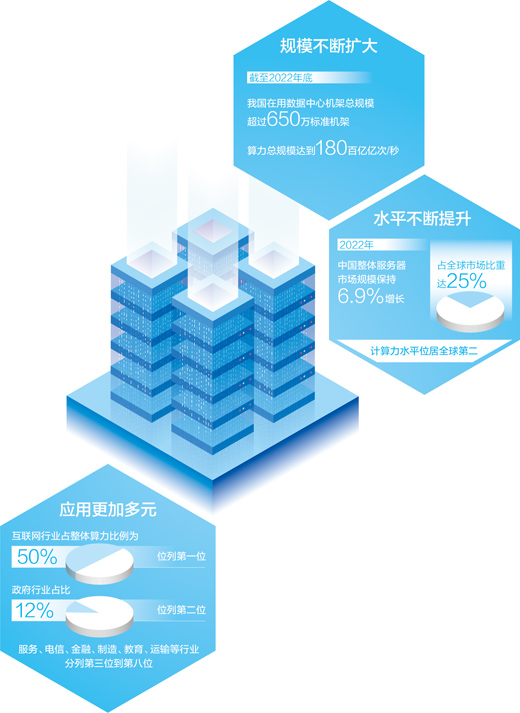 《2022—2023全球計算力指數(shù)評估報告》顯示,2022年,中國整體服務(wù)器市場規(guī)模保持6.9%的正增長,占全球市場比重達25%,計算力水平位居全球第二。近年來,我國算力產(chǎn)業(yè)蓬勃發(fā)展,融合應(yīng)用深度不斷拓展。算力作為數(shù)字經(jīng)濟時代的關(guān)鍵生產(chǎn)力,有效賦能千行百業(yè)數(shù)字化轉(zhuǎn)型,推動新興產(chǎn)業(yè)發(fā)展。