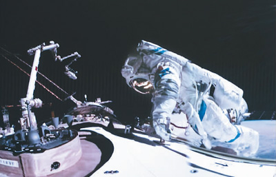 12月21日在北京航天飛行控制中心拍攝的神舟十七號(hào)航天員唐勝杰開(kāi)展艙外操作的畫面。韓啟揚(yáng)攝(新華社發(fā))