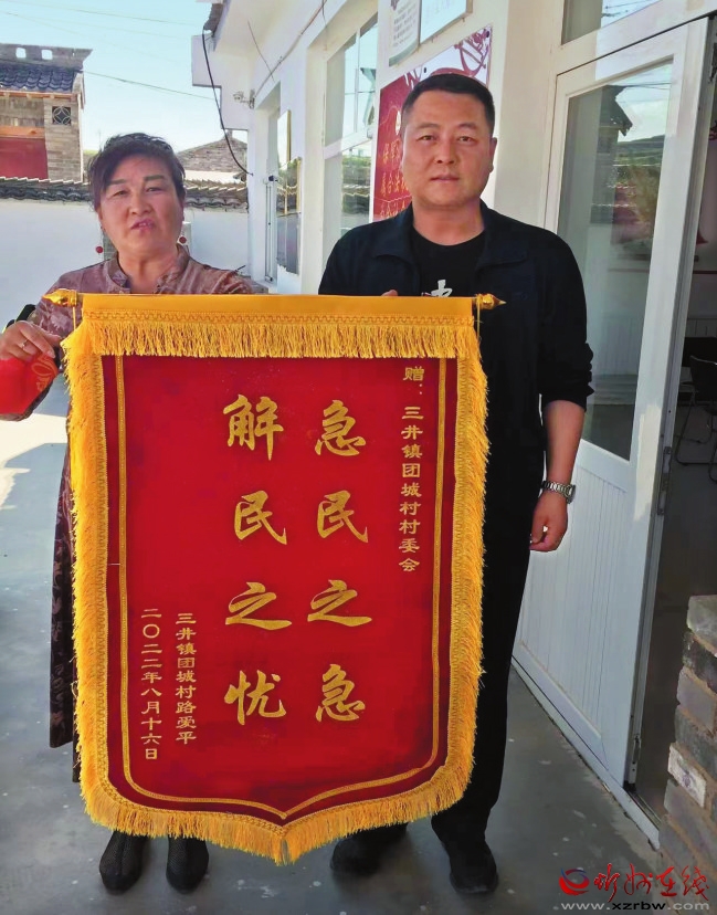 村民路愛平介紹說,去年8月9日,岢嵐縣遭遇到了幾十年不遇的特大暴雨侵襲,凌晨4點(diǎn)多,外出辦事的甄繼榮趕回村里,召集村兩委班子成員連夜巡查村民房屋是否有安全隱患,巡查到早上7點(diǎn)時(shí),發(fā)現(xiàn)靠近河道居住的路愛平和吳貴生兩戶村民的護(hù)坡有被洪水沖刷的痕跡,存在安全隱患,當(dāng)時(shí)還在下著大雨,村里也沒有工程機(jī)械,無奈之下,甄書記及時(shí)聯(lián)系了駐地部隊(duì)的勤務(wù)站,懇請(qǐng)出動(dòng)一臺(tái)大型挖掘機(jī)救援。經(jīng)過部隊(duì)官兵3個(gè)小時(shí)奮戰(zhàn),挖出新的排洪渠道,臨時(shí)改變河水流動(dòng)方向,保住了村民的住房,并及時(shí)在兩排房屋旁邊擋上防洪沙袋。洪水過后,他又積極爭取資金,在鄉(xiāng)政府的支持下,團(tuán)城村修建了200米的護(hù)堤壩,加固了護(hù)坡。事后,村民路愛平到村委會(huì)送上了錦旗。