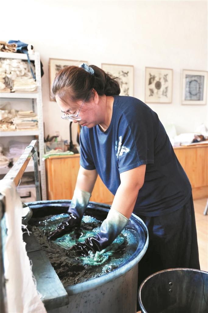 然而,當(dāng)夢想照進(jìn)現(xiàn)實,前行的路總是充滿坎坷。由于前期投入大,入不敷出的經(jīng)濟狀況讓她犯了難,為了支撐店鋪運營,她不僅賣了房子,還貸了款?!半m然丈夫不支持,但是好在兒子很支持,最讓我欣慰的是,他常驕傲地跟別人介紹,‘這是我媽媽染的’‘我媽媽是非遺傳承人’,也正是這些,在我動搖、想要放棄的時候,我選擇堅持下去?!闭f到動情處,趙慧言語滿是幸福。