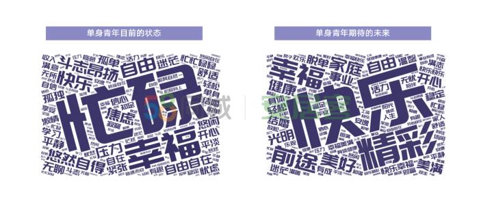 圖片來(lái)源:《2020年單身青年居行報(bào)告》 對(duì)于目前的個(gè)人狀況,單身青年的主要憂慮來(lái)自家庭的壓力。家人、親戚的催婚給單身青年們帶來(lái)了不少的困擾。除此之外,單身青年的朋友圈、交際圈較小,難以遇到合適的對(duì)象也是造成單身的主要原因之一。 困擾難免,但提及目前的單身狀態(tài),多數(shù)單身青年都用“忙碌”來(lái)形容自己。除此之外,單身青年對(duì)于自己的關(guān)鍵詞也提到了“悠然自得”“幸?!薄白杂伞钡?,也有部分單身青年表示自己“孤獨(dú)”“焦慮”“迷?!?。 而對(duì)于未來(lái),單身青年們最希望自己能“快樂(lè)”,追求“自由”“精彩”的人生,期望擁有“美滿”“幸?!钡摹扒巴尽?。(完) (責(zé)任編輯:梁艷) |