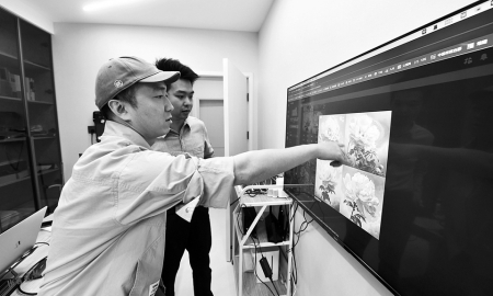 當下,“犀牛創(chuàng)意”傳媒工作室承接了一家老廠區(qū)的老物件展覽業(yè)務,田帥和韓宇帶著自己的創(chuàng)意向AI“提問”,AI生成了文案及一系列設計圖稿,由甲方選擇后他們再精細加工,工作高質高效的同時節(jié)省了大量的人力物力,降低了時間和經濟成本。