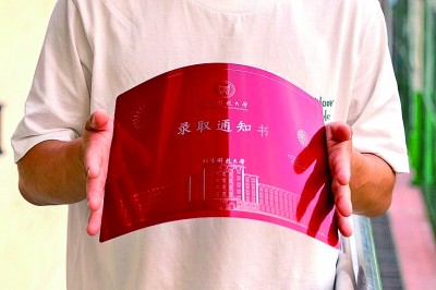 2023版錄取通知書,不但繼續(xù)采用3D手工制作,而且材質(zhì)更薄更堅挺,厚度差不多和3張普通A4紙相當,可任意對折、側(cè)壓,甚至可以像紙張一樣卷曲成軸。