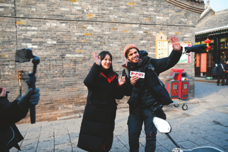 龍祥鳳瑞迎新春、龍躍鳳舞鬧新春、龍章鳳彩賀新春,熱鬧的平遙中國年吸引不少外國友人來打卡,吃美食、看文化、當(dāng)回“晉商少奶奶”?!捌竭b古城歷史悠久,是曾經(jīng)的‘中國華爾街’,在全世界都非常著名,晉商票號讓人感到震撼?!迸D月廿七中午,剛剛結(jié)束山西大同行程的葡萄牙游客Joao與哥哥來到平遙古城。Joao是一位中國歷史愛好者,談起腳下的平遙古城連連豎起大拇指,“我們特意把平遙的旅程放在春節(jié)這段時間,要轉(zhuǎn)轉(zhuǎn)古城的歷史遺跡,還要看看古城的特色演出,感受一番地道的中國年?!?/p>