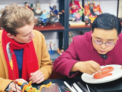 中國年的味道離不開非遺的加持,龍年春節(jié),新鮮有趣的非遺故事讓更多外國人喜歡上非遺大省山西。春節(jié)期間,山西衛(wèi)視融媒體推出“全世界愛過中國年”特別策劃,邀請7位來自世界各地的“非遺體驗官”到山西拜師學(xué)藝體驗?zāi)晁?,在山西多樣的非遺年俗里“遺”起過龍年。圍著大紅圍巾的英國小伙Rees跟著省級非遺傳承人衛(wèi)興安學(xué)習(xí)浮山面塑,聽說面塑是面做的,拿起就要咬一口,可愛又好笑;屬龍的南非姑娘陳諾第一次了解本命年,并獲得絳州木版年畫省級非遺傳承人吳百鎖贈與的新年禮物——拓印“龍”年畫;以“過年期間吃遍山西美食”為目標(biāo)的巴基斯坦女孩代妮婭在太原工藝美術(shù)大師孟艷萍指導(dǎo)下一氣呵成完成糖畫制作,不愧是個“小吃貨”……7位“非遺體驗官”紛紛表白對山西非遺的熱愛,還有什么比外國人自己的親身經(jīng)歷更有說服力、感染力呢?山西衛(wèi)視該節(jié)目制作團隊相關(guān)負(fù)責(zé)人楊雅菲說:“我們希望通過外國人的視角,為世界送上一場熱鬧喜慶的中國非遺文化盛宴?!?/p>