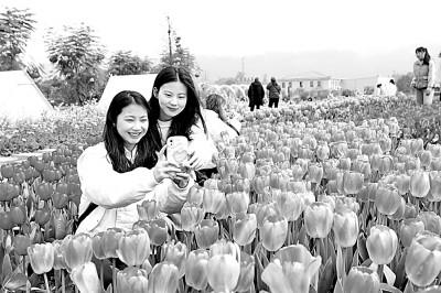 重慶市永川區(qū)十里荷香景區(qū)的郁金香競相綻放,吸引游客打卡。陳仕川攝/光明圖片