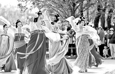 河北省唐山市南湖公園內(nèi),市民身著亮眼漢服游玩。董蓓攝/光明圖片