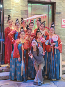 “忻青年”第一個視頻的標題是《跟著我們在古城街道上炫起來,民族的才是世界的》。最初的賬號只是推送藝術(shù)團在演出之余的短視頻,用于宣傳沉浸式演出《遇見秀容》。民間舞較大眾化,有熟悉的旋律,廣場舞動作簡單又生活化,容易普及。通過短視頻讓更多的人了解忻州古城,看見《遇見秀容》團隊演出之余的生活。