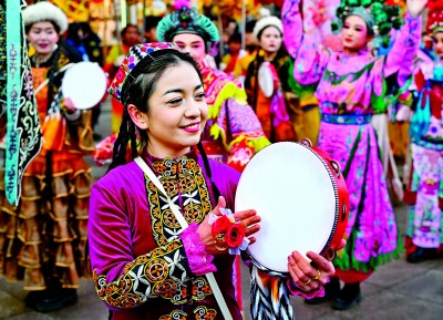 居民在位于烏魯木齊的新疆國際大巴扎社火活動(dòng)現(xiàn)場。新華社發(fā)