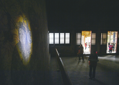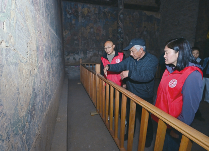 4月10日,山西省文化遺產(chǎn)規(guī)劃研究院勘察設(shè)計團(tuán)隊(duì)在高平仙翁廟正殿內(nèi)借助冷光源進(jìn)行壁畫病害調(diào)查。