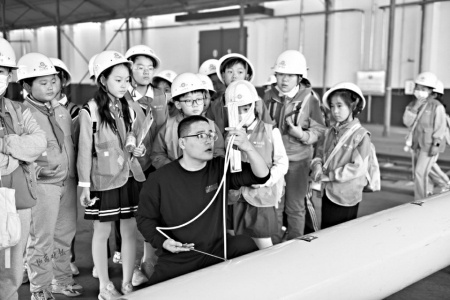 “緊跟老師不走散,眼睛看好腳下路。不動設(shè)備不觸摸,戴好口罩聽指揮!”活動伊始,庫區(qū)工作人員并未急于帶孩子們進(jìn)入核心區(qū)域,而是先教大家一段朗朗上口的安全口訣。這列由20多名小成員組成的特殊“小火車”,要在龐大糧庫中安全“行駛”,必須遵守嚴(yán)格紀(jì)律。
