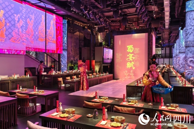 東郊記憶園區(qū)內(nèi)以蜀地文化為創(chuàng)作背景,溯源中國傳統(tǒng)宴飲儀禮打造的全景沉浸式漢文化主題餐秀——蜀宴賦。人民網(wǎng) 趙祖樂攝