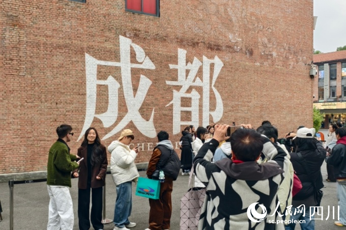 東郊記憶園區(qū)“成都墻”以巨大的“成都”字樣和獨(dú)特的藝術(shù)設(shè)計(jì)成為園區(qū)的網(wǎng)紅打卡地,吸引了眾多游客和市民前來參觀。人民網(wǎng) 趙祖樂攝