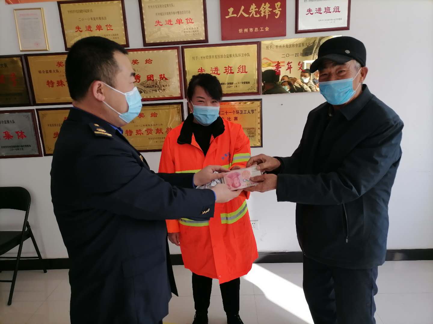 2月5日上午,來(lái)到忻州開發(fā)區(qū)城管綜合執(zhí)法隊(duì)辦公室。連日來(lái),因丟失2萬(wàn)元現(xiàn)金籠罩在69歲農(nóng)民工趙大爺和他一家人心頭的煩惱和惆悵一掃而光。