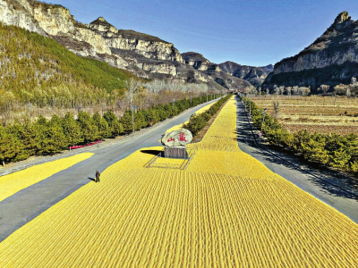 山西晚報(bào)·山河+訊(記者 溫麗芳)近日,在陽泉盂縣藏山景區(qū),一條由金黃玉米鋪就的“黃金大道”,在青山、藍(lán)天的映襯下,構(gòu)成一道別樣的冬日風(fēng)景。據(jù)了解,藏山景區(qū)主動(dòng)騰退千米道路,為周邊農(nóng)戶提供免費(fèi)晾曬場(chǎng)地,讓豐收的玉米與巍峨的太行山水相映成畫,繪就了一幅農(nóng)旅共融的生動(dòng)圖景。