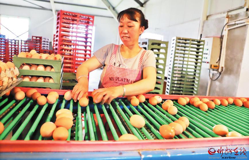 原平農(nóng)商行積極開展“三大四掃五進(jìn)”活動(dòng),讓普惠金融的觸角向鄉(xiāng)村不斷延伸,精準(zhǔn)對(duì)接縣域種養(yǎng)大戶,支持種養(yǎng)業(yè)發(fā)展。今年,該行為原平市興崞養(yǎng)殖專業(yè)合作社提供400萬(wàn)元信貸資金,解決了企業(yè)流動(dòng)資金不足的問題。圖為專業(yè)合作社的工人在車間分撿雞蛋。趙 鴻 攝